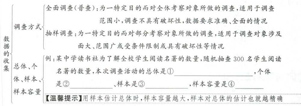 ①全校学生阅读名著的数量 ②每名学生阅读名著的数量 ③300名学生阅读名著的数量 ④300