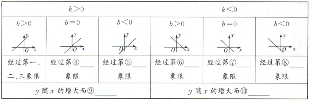 ,$k$,$b$ 是常数)的函数,叫一次函数。2. 特别地,当 $ b = $②