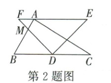 2. (2021·安徽)两个直角三角板如图摆放,其中∠BAC=∠EDF=90°,∠E=45°,∠C=30°,AB与DF交于点M。若BC//EF,则∠BMD的大小为()
