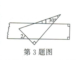 3. (2017·安徽)直角三角板和直尺如图放置。若∠1=20°,则∠2的度数为()