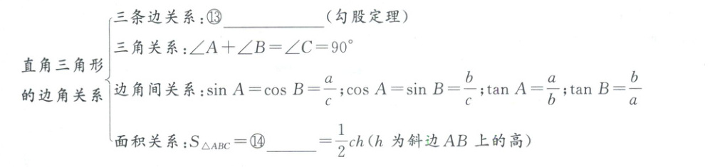 ⑬$c^{2}=a^{2}+b^{2}$ ⑭$\frac{1}{2}ab$