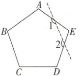(2025·湖北模拟预测)如图,将正五边形剪掉一个角(裁剪线不经过顶点),则$\angle1+\angle2$的度数和为(