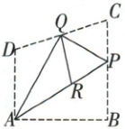 3.(2020·安徽)在数学探究活动中,敏敏进行了如下操作:如图,将四边形纸片$ABCD$沿过点$A$的直线折叠,使得点$B$落在$CD$上的点$Q$处,折痕为$AP$;再将$\triangle PCQ$,$\triangle ADQ$分别沿$PQ$,$AQ$折叠,此时点$C$,$D$落在$AP$上的同一点$R$处。请完成下列探究: