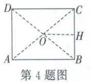 4.(2025·内蒙古)如图,$ABCD$是一个矩形草坪,对角线$AC$,$BD$相交于点$O$,$H$是$BC$边的中点,连接$OH$,且$OH = 20\ m$,$AD = 30\ m$,则该草坪的面积为 ()