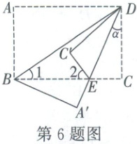 6.(2025·河北)如图,将矩形$ABCD$沿对角线$BD$折叠,点$A$落在$A'$处,$A'D$交$BC$于点$E$.将$\triangle CDE$沿$DE$折叠,点$C$落在$\triangle BDE$内的$C'$处,下列结论一定正确的是 ()