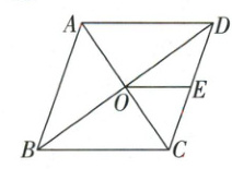 如图,在菱形 $ABCD$ 中,对角线 $AC$,$BD$ 相交于点 $O$,点 $E$ 为 $CD$ 的中点。若 $OE = 2$,则菱形 $ABCD$ 的周长为()