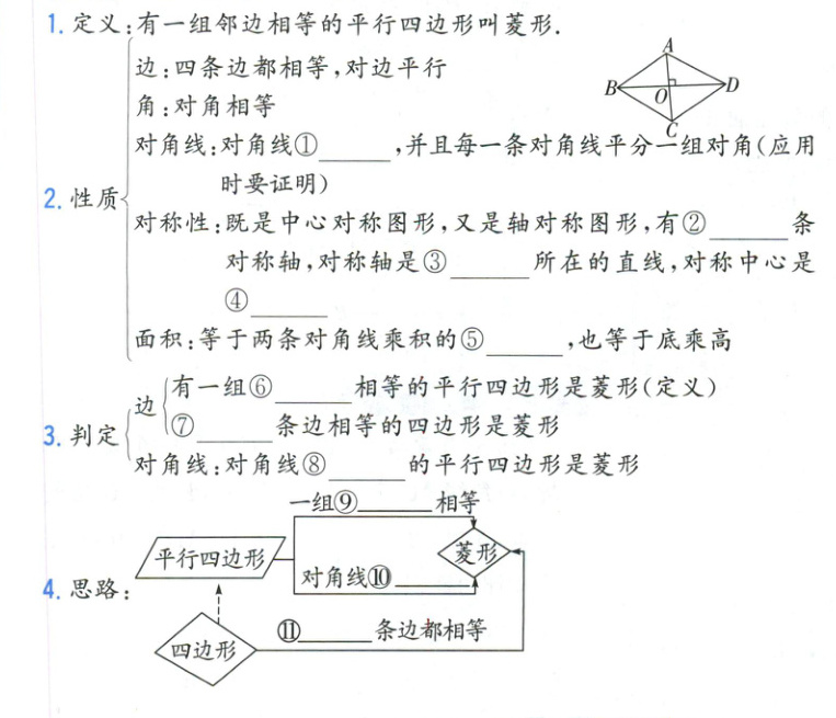 ⑧互相垂直 ⑨邻边 ⑩互相垂直 ⑪四