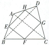 ∵$E$,$F$,$G$,$H$ 分别是 $AB$,$BC$,$CD$,$AD$ 的中点,