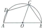 1. (2025·安徽)如图,四边形ABCD的顶点都在半圆O上,AB是半圆O的直径,连接OC,$\angle DAB + 2\angle ABC = 180^{\circ}$.