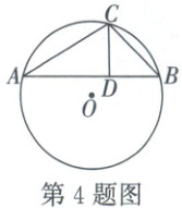 4. (2019·安徽)如图,$\triangle ABC$内接于$\odot O$,$\angle CAB = 30^{\circ}$,$\angle CBA = 45^{\circ}$,$CD\perp AB$于点D,若$\odot O$的半径为2,则CD的长为_.