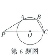 6.($2025·$福建)如图,$PA$与$\odot O$相切于点$A$,$PO$的延长线交$\odot O$于点$C$. $AB// PC$,且交$\odot O$于点$B$. 若$\angle P = 30°$,则$\angle BCP$的大小为
