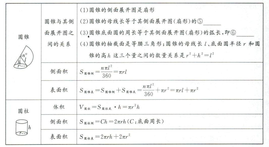⑤半径 ⑥$2\pi r=\frac{n\pi l}{180}$