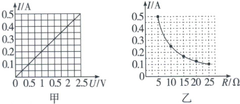 1. 如图是小明在探究电流与电压、电阻的关系实验中绘制的两幅图像,由图像甲可知: