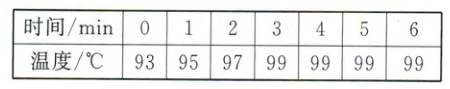 (2)当水温升高到93℃时,每隔1min记录一次温度并填入下表,同时观察水中发生的现象。