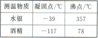 (10)水银和酒精是液体温度计常用的测温物质,1个标准大气压下的凝固点和沸点如下表,本实验应选_制作的温度计。