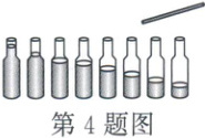 4.C [解析]当用相同的力敲击瓶子时,振动的物体是瓶子和水柱,瓶中盛水越多,瓶子和水的质量越大,越难振动,音调越低,故A、B错误;当用嘴依次吹瓶口,振动的物体是空气柱,瓶中盛水越多,空气柱越短,越容易振动,频率越大,音调越高,故C正确,D错误。
