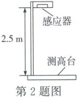 2.B [解析]感应器记录信号从发射到接收所经历的时间为$5 × 10^{-3} s,$超声波从感应器到人的头部的传播时间为该时间的一半,则感应器到人头部的距离$s = vt = 340 m/s × \frac{1}{2} × 5 × 10^{-3} s = 0.85 m,$人的身高h = 2.5 m - 0.85 m = 1.65 m。