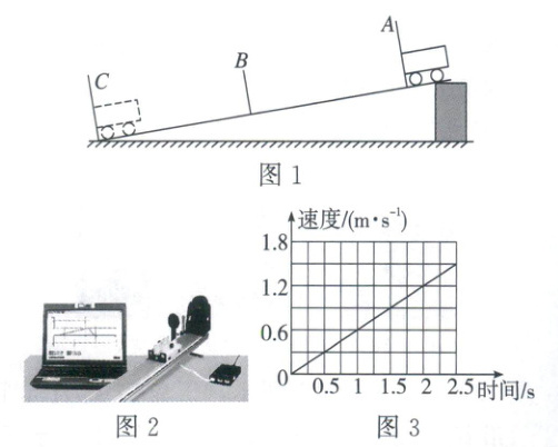 (6)[新考法]小海同学用图 1 所示的装置研究小车在斜面上的运动;他将小车从 A 处静止释放,用秒表测出小车从 A 处滑到 C 处的时间 t₁ = 2.5 s;再次将小车从 A 处静止释放,测出小车从 A 处滑到中点 B 处的时间 t₂ = 1.7 s。