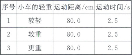(5)[数据分析]实验时,又选用了形状相同、轻重不同的小车,在同一个斜面上做了多次实验,记录数据如下表,分析表中数据可知:小车的平均速度与小车的轻重_(选填“有”或“无”)关。