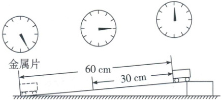 (4)如图,让小车从顶端由静止释放。若秒表每格为 1 s,该次实验中,小车通过全程的长度 s_______=_m,小车通过全程的平均速度 v_______=_m/s。把金属片移到斜面中间位置,如图所示,距离车头为 30 cm,再让小车从顶端由静止释放,所用时间如秒表所示。由数据可知小车下半程的平均速度是 v_______=_m/s。