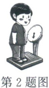 2. (2022·安徽)如图所示为小张测量体重时的情景,静止时体重计对他的支持力为 $ F_1 $,他对体重计的压力为 $ F_2 $,他受到的重力为 $ G $,则(