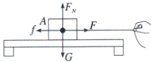 8. (2025·常州)小明用细绳拉木块 $ A $ 在水平桌面上向右匀速直线运动,不计空气阻力,请在图中画出木块的受力示意图。