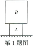 1.2000 [解析]B对A的压力等于B的重力,大小为$F =G_B = m_Bg = 2\ kg × 10\ N/kg = 20\ N$,A的受力面积$S =100\ cm^2 = 0.01\ m^2$,则B对A的压强$p = \frac{F}{S} = \frac{20\ N}{0.01\ m^2} =2000\ Pa$。