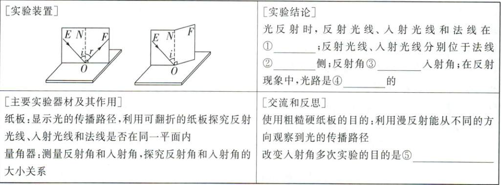 ①同一平面内②两③等于④可逆⑤使实验结论更具普遍性