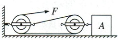 7. (2025·合肥二模)小沈同学用如图所示的滑轮组拉动放置在水平地面上边长为 5 cm 的正方体物块。在绳子的自由端施加水平向右大小为 20 N 的拉力 F,使重力为 100 N 的物块,在 10 s 内沿水平地面匀速直线运动了 2 m,不计滑轮重与绳重及滑轮轴处的摩擦。求: