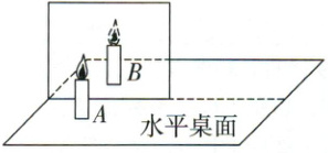 (4) 将两支相同的蜡烛 A 和 B 分别竖放在玻璃板前后,点燃蜡烛_______(选填“A”或“B”),并移动蜡烛 B,直至与蜡烛 A 的像重合。