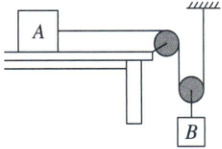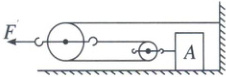 [解析]题图中有两个动滑轮,与右边小动滑轮相连的绳子有$2$段,物体$A$克服摩擦力做功,则每段绳子的拉力$F_{绳}=\dfrac{1}{2}f=\dfrac{1}{2}×60\ N = 30\ N$,与左边大动滑轮相连的绳子有$3$段,因此水平拉力$F = 3F_{绳}=3×30\ N = 90\ N$。