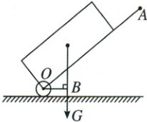 1. (2016·安徽)拉杆式旅行箱可看成杠杆,如图所示。已知$OA = 1.0\ m$,$OB = 0.2\ m$,箱重$G = 120\ N$,请画出使箱子在图示位置静止时,施加在端点$A$的最小作用力$F$的示意图,且$F=$