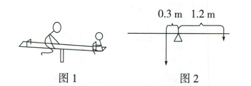 4. (2023·安徽)如图1,爸爸和小红坐在跷跷板的两侧,在水平位置保持平衡。将其简化成图2所示的杠杆,不计杠杆自重的影响,若小红的质量为$15\ kg$,则爸爸的质量为