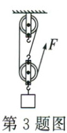 3. (2022·安徽)用图示的滑轮组将重为$3.6N$的物体竖直向上匀速提升$0.5m$,拉力$F$的大小为$1.5N$,则该滑轮组的机械效率为_。