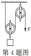 4. (2021·安徽)如图,用滑轮组将一重物竖直向上匀速提升$2m$,所用拉力$F = 100N$,若该过程中滑轮组的机械效率为$80\%$,则滑轮组对重物做的有用功为_J。