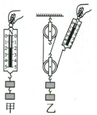 (2)图乙中,为了测量绳子自由端的拉力$F$,$A$同学认为应该在弹簧测力计静止时读数,$B$同学认为应该在缓慢匀速提升时读数,正确的是_(选填“$A$”或“$B$”)同学的方法。