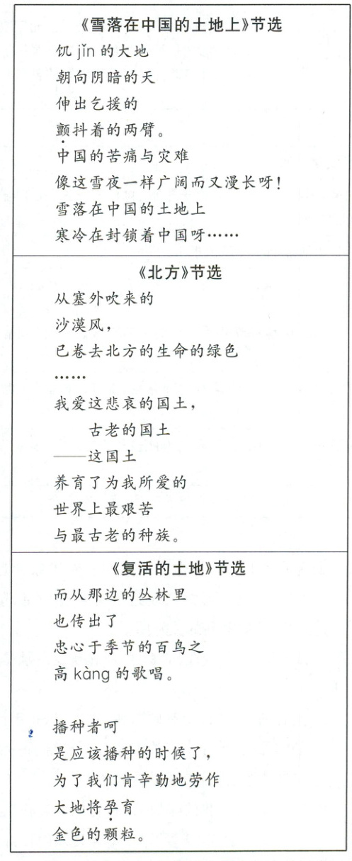 (4)“土地”是艾青诗歌中主要意象之一,请结合《艾青诗选》全书,概括这一意象的特点。