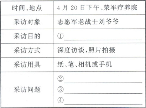 11. 小语和同学要去他们曾经做公益的荣军疗养院采访一位志愿军老战士,请你围绕“家国情怀”主题帮他们完善采访提纲。