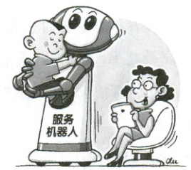 寓意:服务机器人可提供便利,但无法替代亲情陪伴。