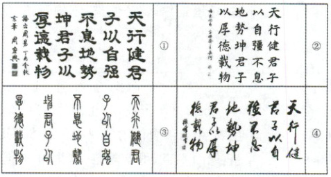 3. 在“道”字演变陈列馆里,小楚观赏了四幅书法作品,请你帮他判断下面哪项说法有误(