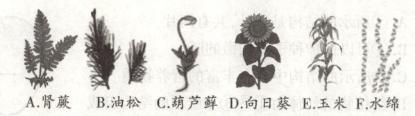(均填字母)。(2)具有根、茎、叶、花、果实、种子六大器官的植物是