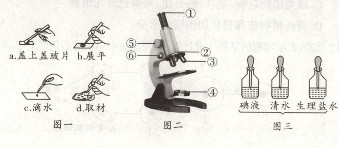 (填结构名称)上。(3)图三中制作洋葱鳞片叶内表皮细胞临时装片实验所选用的试剂是