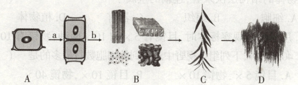 (填“细胞分裂”或“细胞分化”)。(3)图C中柳树的叶片,由