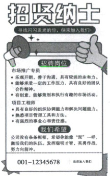 6. 新情境 为名著人物推荐岗位 某公司准备进行招聘会,招聘海报如右图。请你从下列名著人物中任选一位,为其推荐一个岗位,并结合名著内容说明理由。(5分)
