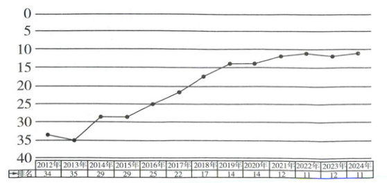 2012年至2024年中国的全球创新指数排名总体呈