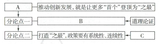 17A.中心论点(或提出论点) B.催生“首个”,政策要有前瞻性、超前性 C.举例论证(或事实论证)(3分。每空1分)