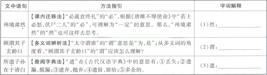 本题在考查文言词语释义时,为考生提供了文言词语释义“脚手架”——方法提示,以考促学,引导考生巧妙掌握学习文言词语的方法,减少机械记忆。