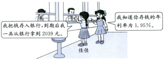 到期后一共从银行拿到的钱 $ = 2000 + 39 = 2039$(元)。