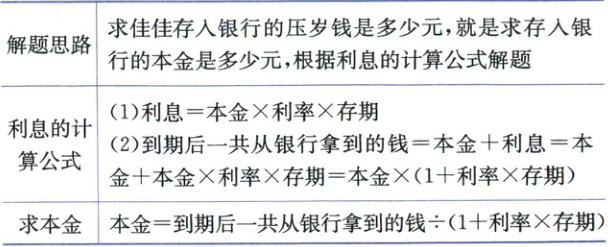 典型例题 春节过后,佳佳将自己的压岁钱全部存入银行,存期是一年。佳佳存入银行的压岁钱是多少元?