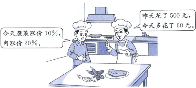 6. 玫瑰园酒店今天买的蔬菜和肉与昨天买的同样多,今天买蔬菜花了多少钱?